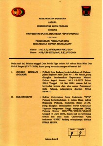 Perjanjian Kerja Sama antara Dinas Koperasi dan UKM Kota Padang dan Fakultas Ekonomi dan Bisnis Universitas Putra Indonesia “YPTK” bertujuan untuk mendukung program pembangunan daerah serta penguatan kapasitas akademik melalui kegiatan pendidikan, penelitian, dan pengabdian masyarakat. Kegiatan tersebut mencakup program magang mahasiswa, praktisi mengajar, penelitian kolaboratif antara dosen dan mahasiswa, serta pengabdian kepada masyarakat yang difokuskan pada optimalisasi Optimalisasi penerapan platform digital pada koperasi dan UMKM, serta Pemanfaatan data analisis pada koperasi dan UMKM. Kerja sama ini juga menekankan pentingnya kolaborasi berkelanjutan dalam memanfaatkan potensi akademik dan sumber daya daerah demi mendukung pengembangan UMKM di Kota Padang.