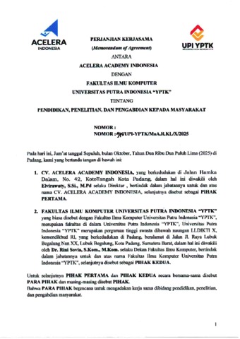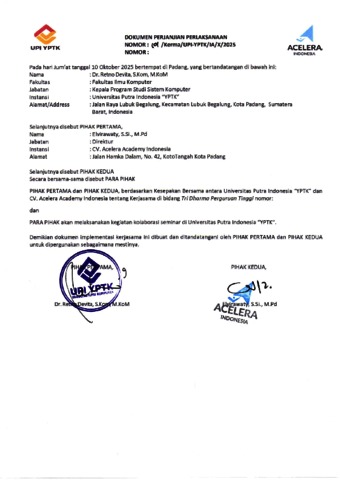 Biro, Kerjasama (2025) Kerjasama Antara Fakultas Ilmu Komputer Prodi Sistem Komputer UPI-YPTK dengan Acelera Academy Indonesia. Biro Kerjasama UPI YPTK. (Unpublished)