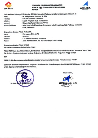 Biro, Kerjasama (2025) Kerjasama Antara Fakultas Ekonomi dan Bisnis Prodi Manajemen UPI-YPTK dengan Acelera Academy Indonesia. Biro Kerjasama UPI YPTK. (Unpublished)