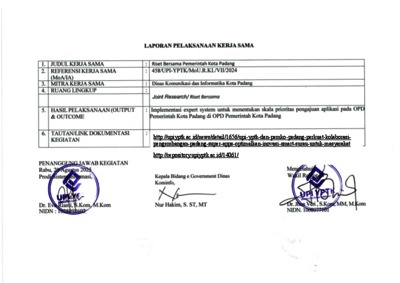 Biro, Kerjasama (2025) Implementation Arrangement (IA) Antara Program Studi Sistem Informasi Universitas Putra Indonesia "YPTK" dan Dinas Komunikasi dan Informatika Kota Padang tentang Kerjasama di bidang Joint Research Aplikasi Super App Padang Mobile. Biro Kerjasama UPI YPTK. (Unpublished)