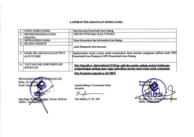 Biro, Kerjasama (2025) Implementation Arrangement (IA) Antara Program Studi Teknik Informatika Universitas Putra Indonesia "YPTK" dan Dinas Komunikasi dan Informatika Kota Padang tentang Kerjasama di bidang Joint Research Aplikasi Super App Padang Mobile. Biro Kerjasama UPI YPTK. (Unpublished)
