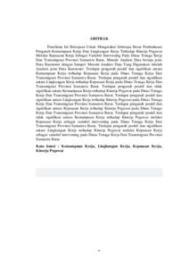 Penelitian Ini Bertujuan Untuk Mengetahui Seberapa Besar Pembahasan Pengaruh Kemampuan Kerja Dan Lingkungan Kerja Terhadap Kinerja Pegawai Melalui Kepuasan Kerja Sebagai Variabel Intervening Pada Dinas Tenaga Kerja Dan Transmigrasi Provinsi Sumatera Barat. Metode Analisis Data berupa jenis Data Kuesioner dengan Sampel. Metode Analisis Data Yang Digunakan Adalah Analisis jenis Data Kuesioner. Terdapat pengaruh positif dan signifikan antara Kemampuan Kerja terhadap Kepuasan Kerja pada Dinas Tenaga Kerja Dan Transmigrasi Provinsi Sumatera Barat. Terdapat pengaruh positif dan signifikan antara Lingkungan Kerja terhadap Kepuasan Kerja pada Dinas Tenaga Kerja Dan Transmigrasi Provinsi Sumatera Barat. Terdapat pengaruh positif dan tidak signifikan antara Kemampuan Kerja terhadap Kinerja Pegawai pada Dinas Tenaga Kerja Dan Transmigrasi Provinsi Sumatera Barat. Terdapat pengaruh positif dan signifikan antara Lingkungan Kerja terhadap Kinerja Pegawai pada Dinas Tenaga Kerja Dan Transmigrasi Provinsi Sumatera Barat. Terdapat pengaruh positif dan signifikan antara Kepuasan Kerja terhadap Kinerja Pegawai pada Dinas Tenaga Kerja Dan Transmigrasi Provinsi Sumatera Barat. Terdapat pengaruh positif dan tidak signifikan antara Kemampuan Kerja terhadap Kinerja Pegawai melalui Kepuasan Kerja sebagai variabel intervening pada Dinas Tenaga Kerja Dan Transmigrasi Provinsi Sumatera Barat. Terdapat pengaruh positif dan signifikan antara Lingkungan Kerja terhadap Kinerja Pegawai melalui Kepuasan Kerja sebagai variabel intervening pada Dinas Tenaga Kerja Dan Transmigrasi Provinsi Sumatera Barat. Kata kunci : Kemampuan Kerja, Lingkungan Kerja, Kepuasan Kerja, Kinerja Pegawai