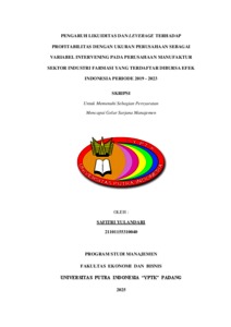Yulandari, Safitri (2025) PENGARUH LIKUIDITAS DAN LEVERAGE TERHADAP PROFITABILITAS DENGAN UKURAN PERUSAHAAN SEBAGAI VARIABEL INTERVENING PADA PERUSAHAAN MANUFAKTUR SEKTOR INDUSTRI FARMASI YANG TERDAFTAR DIBURSA EFEK INDONESIA PERIODE 2019 – 2023. Sarjana thesis, Universitas Putra Indonesia YPTK Padang.