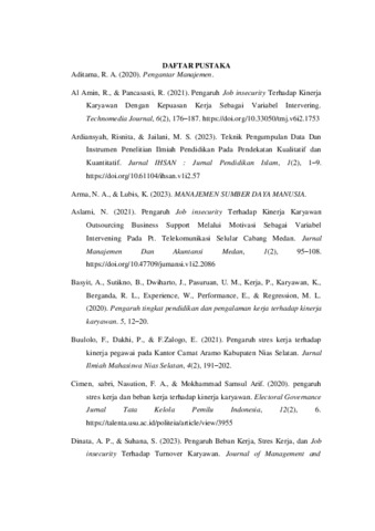 Sasmin, Doli Riadi (2025) PENGARUH STRES KERJA DAN JOB INSECURITY TERHADAP KINERJA GURU DENGAN PRESTASI KERJA SEBAGAI VARIABEL INTERVENING PADA SD SWASTA EXCELLENT BUKITTINGGI. Sarjana thesis, Universitas Putra Indonesia YPTK Padang.