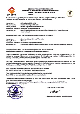 Biro, Kerjasama (2025) Memorandum of Understanding (MoU) antara Universitas Putra Indonesia “YPTK” Padang dan Institute for Language Advancement (IfLA). Biro Kerjasama UPI YPTK. (Unpublished)