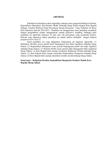 Hidayat, Rahayu Rahmah (2025) ANALISIS PENGARUH KEBIJAKAN DIVIDEN, KEPEMILIKAN MANAJERIAL, DAN STRUKTUR MODAL TERHADAP HARGA SAHAM DENGAN KURS RUPIAH SEBAGAI VARIABEL MODERASI PADA PERUSAHAAN BARANG KONSUMSI YANG TERDAFTAR DI BURSA EFEK INDONESIA PERIODE 2019-2023. Sarjana thesis, Universitas Putra Indonesia YPTK Padang.