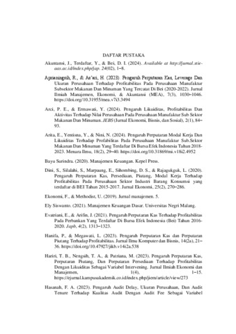 Kurniawati, Rizki (2025) PENGARUH PERPUTARAN KAS, PERPUTARAN PIUTANG TERHADAP PROFITABILITAS DENGAN LIKUIDITAS SEBAGAI VARIABEL INTERVENING PADA PERUSAHAAN MANUFAKTUR (SUB SEKTOR INDUSTI MAKANAN DAN MINUMAN) YANG TERDAFTAR DI BEI 2019 – 2023. Sarjana thesis, Universitas Putra Indonesia YPTK Padang.