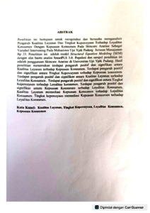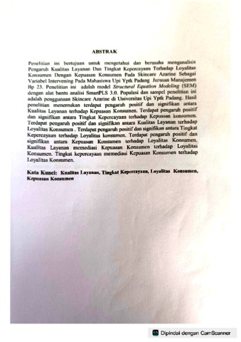 PENGARUH KUALITAS LAYANAN DAN TINGKAT KEPERCAYAAN TERHADAP LOYALITAS KONSUMEN DENGAN KEPUASAN KONSUMEN PADA SKINCARE AZARINE SEBAGAI VARIABEL INTERVENING PADA MAHASISWA UPI YPTK PADANG JURUSAN MANAJEMEN BP 23
