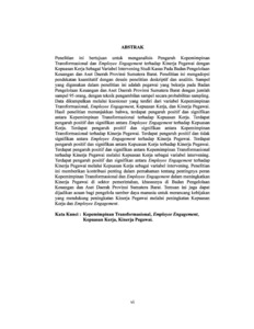 Waluyo, Nadya (2025) PENGARUH KEPEMIMPINAN TRANSFORMASIONAL DAN EMPLOYEE ENGAGEMENT TERHADAP KINERJA PEGAWAI MELALUI KEPUASAN KERJA SEBAGAI VARIABEL INTERVENING (STUDI KASUS PADA BADAN PENGELOLAAN KEUANGAN DAN ASET DAERAH PROVINSI SUMATERA BARAT). Sarjana thesis, Universitas Putra Indonesia YPTK Padang.