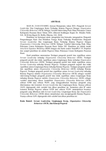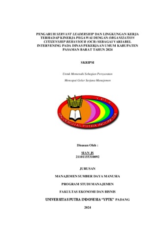 Js, Sian (2025) PENGARUH SERVANT LEADERSHIP DAN LINGKUNGAN KERJA TERHADAP KINERJA PEGAWAI DENGAN ORGANIZATION CITIZENSHIP BEHAVIOUR (OCB) SEBAGAI VARIABEL INTERVENING PADA DINAS PEKERJAAN UMUM KABUPATEN PASAMAN BARAT TAHUN 2024. Sarjana thesis, Universitas Putra Indonesia YPTK Padang.