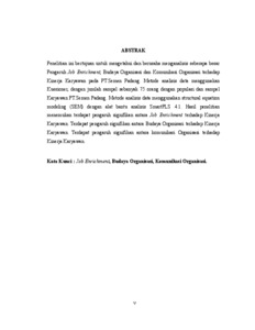 Penelitian ini bertujuan untuk mengetahui dan berusaha menganalisis seberapa besar Pengaruh Job Enrichment, Budaya Organisasi dan Komunikasi Organisasi terhadap Kinerja Karyawan pada PT.Semen Padang. Metode analisis data menggunakan Kuesioner, dengan jumlah sampel sebanyak 75 orang dengan populasi dan sampel Karyawan PT.Semen Padang. Metode analisis data menggunakan structural equation modeling (SEM) dengan alat bantu analisis SmartPLS 4.1. Hasil penelitian menemukan terdapat pengaruh signifikan antara Job Enrichment terhadap Kinerja Karyawan. Terdapat pengaruh signifikan antara Budaya Organisasi terhadap Kinerja Karyawan. Terdapat pengaruh signifikan antara komunikasi Organisasi terhadap Kinerja Karyawan. Kata Kunci : Job Enrichment, Budaya Organisasi, Komunikasi Organisasi.