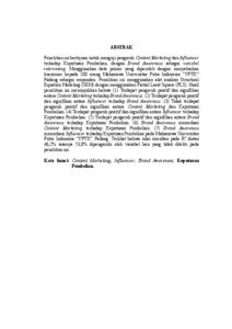 Penelitian ini bertujuan untuk menguji pengaruh Content Marketing dan Influencer terhadap Keputusan Pembelian, dengan Brand Awareness sebagai variabel intervening. Menggunakan data primer yang diperoleh dengan menyebarkan kuesioner kepada 100 orang Mahasiswa Universitas Putra Indonesia “YPTK” Padang sebagai responden. Penelitian ini menggunakan alat analisis Structural Equation Modeling (SEM) dengan menggunakan Partial Least Square (PLS). Hasil penelitian ini menunjukkan bahwa (1) Terdapat pengaruh positif dan signifikan antara Content Marketing terhadap Brand Awareness. (2) Terdapat pengaruh positif dan signifikan antara Influencer terhadap Brand Awareness. (3) Tidak terdapat pengaruh positif dan signifikan antara Content Marketing dan Keputusan Pembelian. (4) Terdapat pengaruh positif dan signifikan antara Influencer terhadap Keputusan Pembelian. (5) Terdapat pengaruh positif dan signifikan antara Brand Awareness terhadap Keputusan Pembelian. (6) Brand Awareness memediasi Content Marketing terhadap Keputusan Pembelian. (7) Brand Awareness memediasi Influencer terhadap Keputusan Pembelian pada Mahasiswa Universitas Putra Indonesia “YPTK” Padang. Terlihat bahwa nilai simultan pada R² diatas 46,2% sisanya 53,8% dipengaruhi oleh variabel lain yang tidak diteliti pada penelitian ini. Kata kunci: Content Marketing, Influencer, Brand Awareness, Keputusan Pembelian.