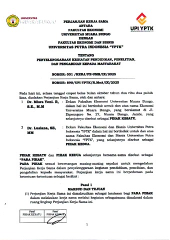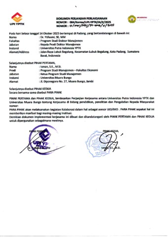 Biro, Kerjasama (2025) Implementation Agreement (IA) Antara Prodi S3 Manajemen UPI-YPTK Dengan Prodi Manajemen Universitas Muara Bungo. Biro Kerjasama UPI YPTK. (Unpublished)