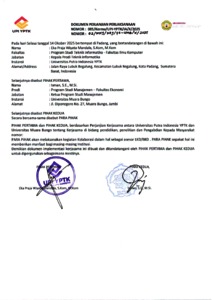 Biro, Kerjasama (2025) Implementation Agreement (IA) Antara Prodi Teknik Informatika UPI-YPTK Dengan Prodi Manajemen Universitas Muara Bungo. Biro Kerjasama UPI YPTK. (Unpublished)