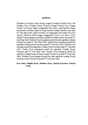 Penelitian ini bertujuan untuk menguji pengaruh Pengaruh Disiplin Kerja Dan Pelatihan Kerja Terhadap Kinerja Karyawan Dengan Prestasi Kerja Sebagai Variabel Intervening dengan menggunakan data primer yang diperoleh dengan menyebarkan koesioner kepada 63 orang karyawan sebagai responden yaitu pada PT. Suka Fajar Solok. Dalam Penelitian ini menggunakan alat analisis Structrual Equation Modeling (SEM) dengan menggunakan Partial Least Square (PLS). Disiplin Kerja berpengaruh positif dan signifikan terhadap Prestasi Kerja pada PT. Suka Fajar Solok. Pelatihan Kerja berpengaruh positif dan tidak signifikan terhadap Prestasi Kerja pada PT. Suka Fajar Solok. Disiplin Kerja berpengaruh positif dan signifikan terhadap Kinerja Karyawan pada PT. Suka Fajar Solok. Pelatihan Kerja berpengaruh positif dan signifikan terhadap Kinerja Karyawan pada PT. Suka Fajar Solok. Prestasi Kerja berpengaruh positif dan signifikan terhadap Kinerja Karyawan pada PT. Suka Fajar Solok. Disiplin Kerja berpengaruh positif dan signifikan terhadap Kinerja Karyawan melalui Prestasi Kerja pada PT. Suka Fajar Solok. Pelatihan Kerja berpengaruh positif dan tidak signifikan terhadap Kinerja Karyawan melalui Prestasi Kerja pada PT. Suka Fajar Solok. Kata kunci: Disiplin Kerja, Pelatihan Kerja, Kinerja Karyawan, Prestasi Kerja