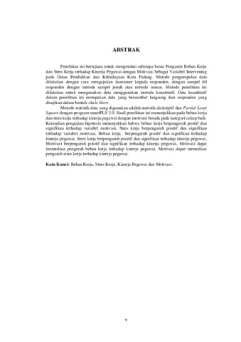 Penelitian ini bertujuan untuk mengetahui seberapa besar Pengaruh Beban Kerja dan Stres Kerja terhadap Kinerja Pegawai dengan Motivasi Sebagai Variabel Intervening pada Dinas Pendidikan dan Kebudayaan Kota Padang. Metode pengumpulan data dilakukan dengan cara mengajukan kuesioner kepada responden, dengan sampel 60 responden dengan metode sampel jenuh atau metode sensus. Metode penelitian ini dilakukan untuk menganalisis data menggunakan motode kuantitatif. Data kuantitatif dalam penelitian ini merupakan data yang bersumber langsung dari responden yang disajikan dalam bentuk skala likert. Metode statistik data yang digunakan adalah statistik deskriptif dan Partial Least Square dengan program smartPLS 3.0. Hasil penelitian ini menunjukkan pada beban kerja dan stres kerja terhadap kinerja pegawai dengan motivasi berada pada kategori cukup baik. Kemudian pengujian hipotesis menunjukkan bahwa beban kerja berpengaruh positif dan signifikan terhadap variabel motivasi, Stres kerja berpengaruh positif dan signifikan terhadap variabel motivasi, Beban kerja berpengaruh positif dan signifikan terhadap kinerja pegawai, Stres kerja berpengaruh positif dan signifikan terhadap kinerja pegawai, Motivasi berpengaruh positif dan signifikan terhadap kinerja pegawai, Motivasi dapat memediasi pengaruh beban kerja terhadap kinerja pegawai, Motivasi dapat memediasi pengaruh stres kerja terhadap kinerja pegawai. Kata Kunci: Beban Kerja, Stres Kerja, Kinerja Pegawai dan Motivasi.