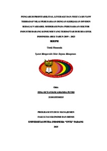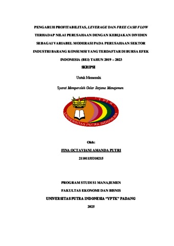 Amanda, Putri Fina Octaviani (2025) PENGARUH PROFITABILITAS, LEVERAGE DAN FREE CASH FLOW TERHADAP NILAI PERUSAHAAN DENGAN KEBIJAKAN DIVIDEN SEBAGAI VARIABEL MODERASI PADA PERUSAHAAN SEKTOR INDUSTRI BARANG KONSUMSI YANG TERDAFTAR DI BURSA EFEK INDONESIA (BEI) TAHUN 2019 – 2023. Sarjana thesis, Universitas Putra Indonesia YPTK Padang.