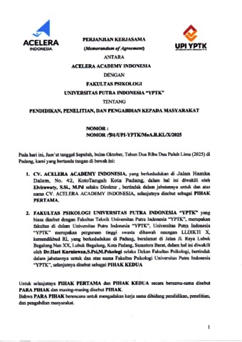 Biro, Kerjasama (2025) Kerjasama Antara Fakultas Psikologi Prodi Psikologi UPI-YPTK dengan Acelera Academy Indonesia. Biro Kerjasama UPI YPTK. (Unpublished)
