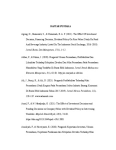 Khairani, Shalsabilla Arma (2025) PENGARUH KEPUTUSAN INVESTASI DAN KEBIJAKAN DIVIDEN TERHADAP NILAI PERUSAHAAN DENGAN PROFITABILITAS SEBAGAI VARIABEL INTERVENING PADA PERUSAHAAN MANUFAKTUR YANG TERDAFTAR DIBEI TAHUN 2019-2023. Sarjana thesis, Universitas Putra Indonesia YPTK Padang.