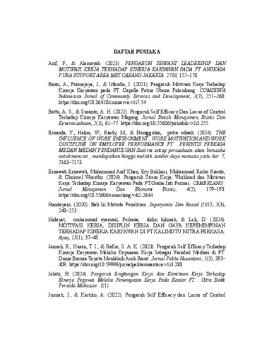 Angraini, Vinna (2025) PENGARUH SELF EFFICACY DAN LINGKUNGAN KERJA TERHADAP KINERJA PEGAWAI MELALUI MOTIVASI SEBAGAI VARIABEL INTERVENING PADA PONDOK PESANTREN PEMBANGUNAN DHARMASRAYA. Sarjana thesis, Universitas Putra Indonesia YPTK Padang.