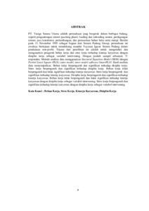 PT. Yasiga Sarana Utama adalah perusahaan yang bergerak dalam berbagai bidang, seperti pengantongan semen (packing plant), loading dan unloading semen, perdagangan umum, jasa konstruksi, pertambangan, dan pemasokan bahan baku serta energi. Berdiri pada 13 November 1995 sebagai bagian dari Semen Padang Group, perusahaan ini awalnya bertujuan untuk mendukung mandiri Yayasan Igasar Semen Padang dalam pendanaan non-profit. Tujuan dari penelitian ini adalah untuk mengetahui dan menganalisis pengaruh beban kerja dan stres kerja terhadap kinerja karyawan dengan disiplin kerja sebagai variabel intervening. Dengan jumlah sampel sebanyak 71 responden. Metode analisis data menggunakan Stuctural Equation Model (SEM) dengan Partial Least Square (PLS), outer model, inner model software SmartPLS3. Hasil analisis data menyimpulkan. Beban kerja berpengaruh dan signifikan terhadap disiplin kerja. Stres kerja berpengaruh dan signifikan terhadap disiplin kerja. Beban kerja tidak berpengaruh dan tidak signifikan terhadap kinerja karyawan. Stres kerja berpengaruh dan signifikan terhadap kinerja karyawan. Disiplin kerja berpengaruh dan signifikan terhadap kinerja karyawan. Beban kerja tidak berpengaruh dan tidak signifikan terhadap kinerja karyawan dengan disiplin kerja sebagai variabel intervening. Stres kerja berpengaruh dan signifikan terhadap kinerja karyawan dengan disiplin kerja sebagai variabel intervening. Kata Kunci : Beban Kerja, Stres Kerja, Kinerja Karyawan, Disiplin Kerja
