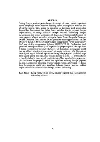 Seiring dengan pesatnya perkembangan teknologi informasi, banyak organisasi mulai mengadopsi sistem berbasis teknologi untuk meningkatkan efisiensi dan efektivitas kinerja. Oleh karena itu penelitian ini bertujuan untuk mengetahui kepemilikan kompetensi dan beban kerja terhadap kinerja pegawai dengan organizational citizenship behavior sebagai variabel intervening dengan menggunakan data primer yang diperoleh dengan menyebarkan angket kepada 50 orang pegawai sebagai responden yaitu pada Kantor Badan Pengelola Keuangan Daerah Kabupaten Solok Selatan. Dalam penelitian ini menggunakan alat analisis Structural Equation Modeling (SEM) dengan menggunakan Partial Least Square PLS yang diolah menggunakan Software SMART PLS 3.0. Berdasarkan hasil penelitian menunjukan bahwa (1) Kompetensi berpengaruh positif dan signifikan terhadap organizational citizenship behavior. (2) Beban kerja berpengaruh positif dan signifikan terhadap organizational citizenship behavior. (3) Kompetensi berpengaruh negatif dan tidak signifikan terhadap kinerja pegawai. (4) Beban kerja berpengaruh positif dan signifikan terhadap kinerja pegawai. (5) organizational citizenship behavior berpengaruh positif dan signifikan terhadap kinerja pegawai. (6) Kompetensi berpengaruh positif dan signifikan terhadap kinerja pegawai melalui organizational citizenship behavior sebagai variabel intervening. (7) Beban kerja berpengaruh positif dan signifikan terhadap kinerja pegawai melalui organizational citizenship behavior sebagai variabel intervening. Kata kunci : Kompetensi, beban kerja, kinerja pegawai dan organizational citizenship behavior