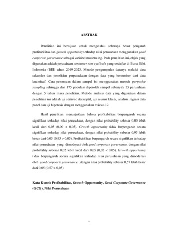 PENGARUH PROFITABILITAS DAN GROWTH OPPORTUNITY TERHADAP NILAI PERUSAHAAN DENGAN GOOD CORPORATE GOVERNANCE (GCG) SEBAGAI VARIABEL MODERATING PADA PERUSAHAAN CONSUMER NON-CYCLICALS YANG TERDAFTAR DI BEI TAHUN 2019-2023