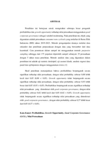 Penelitian ini bertujuan untuk mengetahui seberapa besar pengaruh profitabilitas dan growth opportunity terhadap nilai perusahaan menggunakan good corporate governance sebagai variabel moderating. Pada penelitian ini, objek yang digunakan adalah perusahaan consumer non-cyclicals yang terdaftar di Bursa Efek Indonesia (BEI) tahun 2019-2023. Metode pengumpulan datanya melalui data sekunder dan penelitian perpustakaan dengan data yang bersumber dari data kuantitaif. Cara penentuan dalam sampel ini menggunakan metode purposive sampling sehingga dari 175 populasi diperoleh sampel sebanyak 35 perusahaan dengan 5 tahun masa penelitian. Metode analisis data yang digunakan dalam penelitian ini adalah uji statistic deskriptif, uji asumsi klasik, analisis regresi data panel dan uji hipotesis dengan menggunakan eviews 12. Hasil penelitian menunjukkan bahwa profitabilitas berpengaruh secara signifikan terhadap nilai perusahaan, dengan nilai probability sebesar 0,00 lebih kecil dari 0,05 (0,00 < 0,05). Growth opportunity tidak berpengaruh secara signifikan terhadap nilai perusahaan, dengan nilai probability sebesar 0,93 lebih besar dari 0,05 (0,93 > 0,05). Profitabilitas berpengaruh secara signifikan terhadap nilai perusahaan yang dimoderasi oleh good corporate governance, dengan nilai probability sebesar 0,02 lebih kecil dari 0,05 (0,02 < 0,05). Growth opportunity tidak berpengaruh secara signifikan terhadap nilai perusahaan yang dimoderasi oleh good corpoarte governance., dengan nilai probability sebesar 0,57 lebih besar dari 0,05 (0,57 > 0,05). Kata Kunci: Profitabilitas, Growth Opportunity, Good Corporate Governance (GCG), Nilai Perusahaan