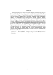 Penelitian ini bertujuan untuk mengetahui seberapa besar pengaruh pengaruh Promosi, Iklan dan Variety seeking behavior terhadap Keputusan Pembelian Pada Brand Skincare Ms glow. Populasi dalam penelitian ini adalah konsumen brand skincare Ms glow di kampus Upi YPTK Padang. Sementara sampel yang diambil sebanyak 70 responden dengan menggunakan teknik kuantitatif. Metode penyebaran data melalui survei dan penyebaran kuesioner kepada konsumen brand skincare Ms glow. Metode analisis data yang digunakan adalah analisis regresi berganda dengan SPSS versi 26. Hasil analisis data menyimpulkan bahwa variabel (1) Promosi berpengaruh positif dan signifikan terhadap keputusan pembelian pada brand skincare Ms glow. (2) Iklan berpengaruh positif dan signifikan terhadap keputusan pembelian pada brand skincare Ms glow. (3) Variety Seeking Behavior berpengaruh positif dan signifikan terhadap keputusan pembelian pada brand skincare Ms glow. (4) Promosi, Iklan dan Variety Seeking Behavior secara simultan berpengaruh positif dan signifikan terhadap keputusan pembelian pada brand skincare Ms glow. Kata Kunci : Promosi, Iklan, Variety Seeking Behavior dan Keputusan Pembelian