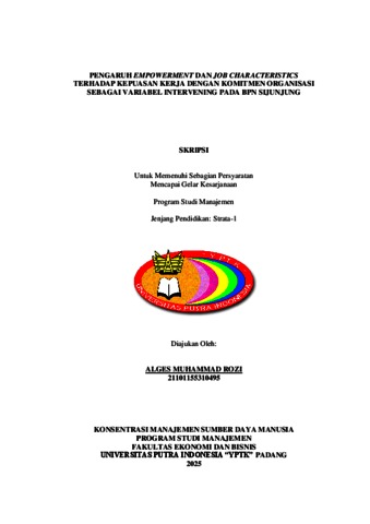 Rozi, Alges Muhammad (2025) PENGARUH EMPOWERMENT DAN JOB CHARACTERISTICS TERHADAP KEPUASAN KERJA DENGAN KOMITMEN ORGANISASI SEBAGAI VARIABEL INTERVENING PADA BPN SIJUNJUNG. Sarjana thesis, Universitas Putra Indonesia YPTK Padang.