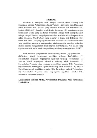 PENGARUH STRUKTUR MODAL DAN PERTUMBUHAN PENJUALAN TERHADAP NILAI PERUSAHAAN DENGAN PROFITABILITAS SEBAGAI VARIABEL INTERVENING PADA PERUSAHAAN SEKTOR CONSUMER NON-CYCLICALS YANG TERDAFTAR DI BURSA EFEK INDONESIA TAHUN 2019-2023