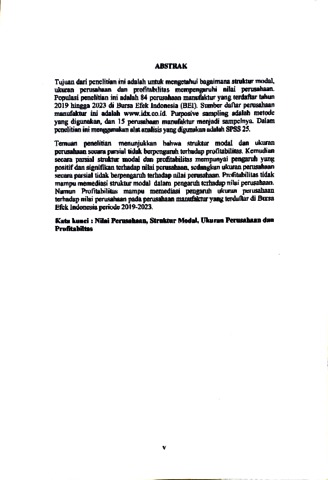 Natalia, Nadia (2025) PENGARUH STRUKTUR MODAL DAN UKURAN PERUSAHAAN TERHADAP NILAI PERUSAHAAN DENGAN PROFITABILITAS SEBAAI VARIABEL INTERVENING PADA PERUSAHAAN MANUFAKTUR SUB SEKTOR ENERGI YANG TERDAFTAR DI BEI TAHUN 2019- 2023. Sarjana thesis, Universitas Putra Indonesia YPTK Padang.