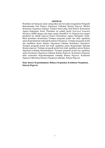 Penelitian ini bertujuan untuk mengetahui dan berusaha menganalisis Pengaruh Kepemimpina Dan Budaya Organisasi Terhadap Kinerja Pegawai Melalui Komitmen Organisasi Sebagai Variabel Intervening Pada Kantor Kementrian Agama Kabupaten Solok. Penelitian ini adalah model Structural Equation Modeling (SEM) dengan alat bantu analisi SmartPLS 3.0. Populasi dan sampel penelitian ini adalah pegawai Kantor Kementrian Agama Kabupatrn Solok. Hasil penelitian menemukan Terdapat pengaruh positif dan tidak signifikan antara Kepemimpnan terhadap Komitmen Organisasi. Terdapat pengaruh positif dan signifikan antara Budaya Organisasi terhadap Komikmen Organisasi. Terdapat pengaruh positif dan tidak signifikan antara Kepemimpin terhadap Kinerja pegawai. Terdapat pengaruh positif dan tidak signifikan antara Budaya Organisasi terhadap Kepemimpinan. Terdapat pengaruh positif dan signifikan antara Komitmen Organisasi terhadap Kinerja Pegawai. Komitmen Orgnasias tidak memediasi Kepemimimpinan terhadap Kinerja Pegawai. Komitmen Orgnisasi Memediasi Budaya Organisasi terhadap Kinerja Pegawai Kata Kunci: Kepemimpinan, Budaya Organsiasi, Komitmen Organisasi, Kinerja Pegawai