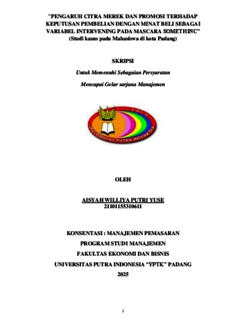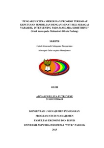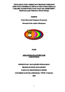 Putri, Yuse Aisyah WIlliya (2025) PENGARUH CITRA MEREK DAN PROMOSI TERHADAP KEPUTUSAN PEMBELIAN DENGAN MINAT BELI SEBAGAI VARIABEL INTERVENING PADA MASCARA SOMETHINC. Sarjana thesis, Universitas Putra Indonesia YPTK Padang.