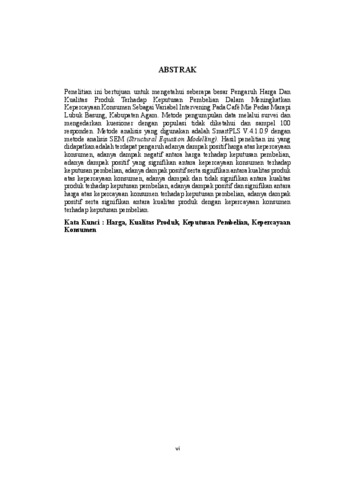 Penelitian ini bertujuan untuk mengetahui seberapa besar Pengaruh Harga Dan Kualitas Produk Terhadap Keputusan Pembelian Dalam Meningkatkan Kepercayaan Konsumen Sebagai Variabel Intervening Pada Café Mie Pedas Marapi Lubuk Basung, Kabupaten Agam. Metode pengumpulan data melalui survei dan mengedarkan kuesioner dengan populasi tidak diketahui dan sampel 100 responden. Metode analisis yang digunakan adalah SmartPLS V.4.1.0.9 dengan metode analisis SEM (Structural Equation Modelling). Hasil penelitian ini yang didapatkan adalah terdapat pengaruh adanya dampak positif harga atas kepercayaan konsumen, adanya dampak negatif antara harga terhadap keputusan pembelian, adanya dampak positif yang signifikan antara kepercayaan konsumen terhadap keputusan pembelian, adanya dampak positif serta signifikan antara kualitas produk atas kepercayaan konsumen, adanya dampak dan tidak signifikan antara kualitas produk terhadap keputusan pembelian, adanya dampak positif dan signifikan antara harga atas kepercayaan konsumen terhadap keputusan pembelian, adanya dampak positif serta signifikan antara kualitas produk dengan kepercayaan konsumen terhadap keputusan pembelian. Kata Kunci : Harga, Kualitas Produk, Keputusan Pembelian, Kepercayaan Konsumen