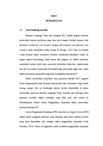 Y Amanda, Dhita (2023) PENERAPAN METODE SIMPLE ADDITIVE WEIGHTING (SAW)DALAM SISTEM PENGAMBILAN KEPUTUSAN UNTUK MENENTUKAN MASYARAKAT YANG LAYAK MENDAPATKAN BANTUAN BLT (studi kasus Kantor Wali Nagari Tigo Sakato). Sarjana thesis, Universitas Putra Indonesia "YPTK" Padang.