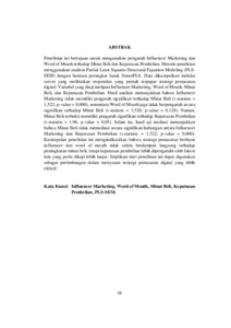 Putri, Salma Fathiya (2025) PENGARUH INFLUENCER MARKETING DAN WORD OF MOUTH TERHADAP KEPUTUSAN PEMBELIAN KOPI PADA KOPKIT CABANG JATI PADANG MELALUI MINAT BELI SEBAGAI VARIABEL INTERVENING. Sarjana thesis, Universitas Putra Indonesia YPTK Padang.