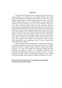 Penelitian ini dilatarbelakangi karena perubahan perilaku konsumen yang awalnya berbelanja secara langsung ke toko menjadi berbelanja online dalam memenuhi kebutuhannya. Dikalangan masyarakat khususnya di Kecamatan Lubuk Begalung, Padang Shopee dan Tiktok Shop menjadi marketplace yang paling diminati untuk berbelanja secara online. Beberapa alasan yang membuat konsumen melakukan keputusan pembelian secara online pada marketplace Shopee dan Tiktok Shop, diantaranya adalah mudah dan praktis digunakan dikalangan masyarakat, harga yang lebih murah, banyak diskon dan promo gratis ongkir yang berikan Shopee dan Tiktok Shop, dan banyak fitur menarik yang lebih interaktif. Penelitian ini bertujuan untuk mengetahui pengaruh harga, diskon, promo gratis ongkir, dan kemudahan bertransaksi terhadap keputusan pembelian pada pengguna aplikasi marketplace (studi kasus pengguna aplikasi marketplcae Shopee dan Tiktok Shop di Kecamatan Lubuk Begalung, Padang) baik secara parsial maupun secara simultan. Penelitian ini menggunakan metode kuantitatif dengan analisis regresi linier berganda. Data penelitian yang dikumpulkan melalui kuesioner. Teknik pengambilan sampel menggunakan purposive sampling dengan jumlah sampel sebanyak 100 responden. Hasil dari penelitian ini menunjukkan bahwa: (1) Harga berpengaruh positif dan signifikan terhadap keputusan pembelian pada aplikasi marketplace (2) Diskon berpengaruh positif dan signifikan terhadap keputusan pembelian pada aplikasi marketplace (3) Promo Gratis Ongkir tidak berpengaruh terhadap keputusan pembelian pada aplikasi marketplace (4) Kemudahan Bertransaksi tidak berpengaruh terhadap keputusan pembelian pada aplikasi marketplace (5) Harga, Diskon, Promo Gratis Ongkir, dan Kemudahan Bertransaksi secara simultan berpengaruh signifikan terhadap keputusan pembelian pada aplikasi marketplace. Kata Kunci: Harga, Diskon, Promo Gratis Ongkir, dan Kemudahan Bertransaski, Keputusan Pembelian