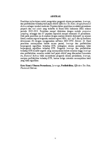 PENGARUH UKURAN PERUSAHAAN, LEVERAGE, PROFITABILITAS TERHADAP EFFECTIVE TAX RATE DENGAN FINANCIAL DISTRESS SEBAGAI VARIABEL MODERASI PADA PERUSAHAAN PROPERTY DAN REALESTATE YANG TERDAFTAR DI BEI TAHUN 2019-2023