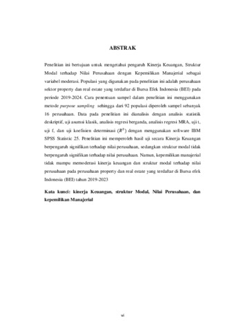Hulu, Yessy Valentina (2025) PENGARUH KINERJA KEUANGAN DAN STRUKTUR MODAL TERHADAP NILAI PERUSAAN DENGAN KEPEILIKAN MANAJERIAL SEBAGAI VARIABEL MODERASI PADA PERUSAHAAN SEKTOR PROPERTI DAN REAL ESTATE BEI TAHUN 2019-2023. Sarjana thesis, Universitas Putra Indonesia YPTK Padang.