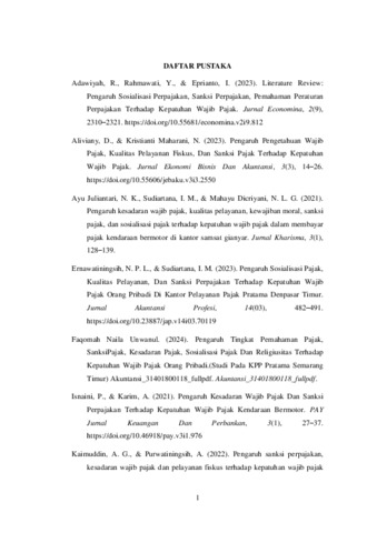 Monika, Anisa Sindy (2025) PENGARUH KESADARAN WAJIB PAJAK, SOSIALISASI PERPAJAKAN, SANKSI PERPAJAKAN, DAN PELAYANAN FISKUS TERHADAP KEPATUHAN WAJIB PAJAK ORANG PRIBADI PADA KANTOR PELAYANAN PAJAK (KPP) PRATAMA MUARA BUNGO. Sarjana thesis, Universitas Putra Indonesia YPTK Padang.
