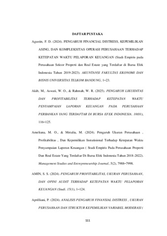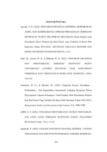 Angelina, Josephine (2025) PENGARUH FINANSIAL DISTRESS, UKURAN PERUSAHAAN,DAN LIKUIDITAS TERHADAP ΚΕΤΕΡΑTAN WAKTU PELAPORAN KEUANGAN TAHUNAN DENGAN PROFITABILITAS SEBAGAI VARIABEL MODERASI PADA SEKTOR REAL ESTATE YANG TERDAFTAR DI BEI TAHUN 2020-2024. Sarjana thesis, Universitas Putra Indonesia YPTK Padang.