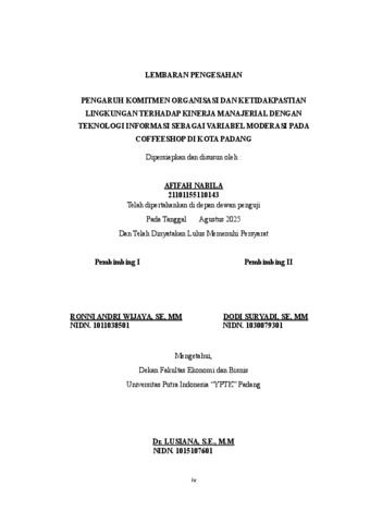 PENGARUH KOMITMEN ORGANISASI DAN KETIDAKPASTIAN LINGKUNGAN TERHADAP KINERJA MANAJERIAL DENGAN TEKNOLOGI INFORMASI SEBAGAI VARIABEL MODERASI PADA COFFEESHOP DI KOTA PADANG
