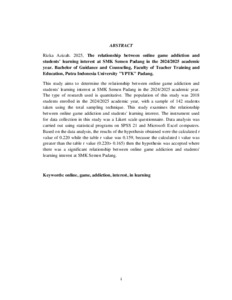 Azizah, Rizka (2025) HUBUNGAN ANTARA KECANDUAN GAME ONLINE DENGAN MINAT BELAJAR SISWA DI SMK SEMEN PADANG TAHUN AJARAN 2025/2026. Sarjana thesis, Universitas Putra Indonesia YPTK Padang.