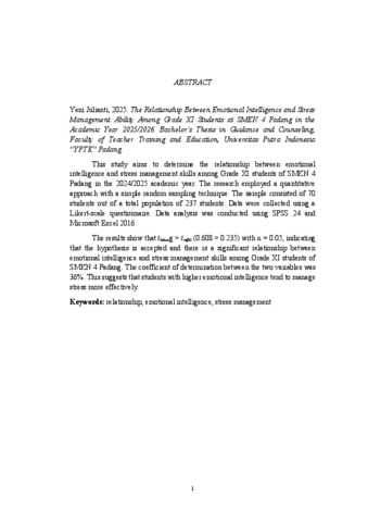 HUBUNGAN KECERDASAN EMOSIONAL DENGAN KEMAMPUAN MANAJEMEN STRES PADA SISWA KELAS XI SMKN 4 PADANG TAHUN AJARAN 2025/2026