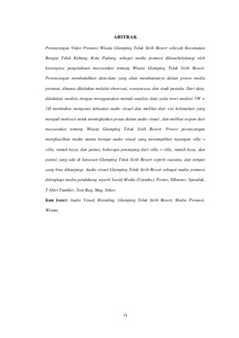 Perancangan Video Promosi Wisata Glamping Teluk Sirih Resort wilayah Kecamatan Bungus Teluk Kabung, Kota Padang. sebagai media promosi dilatarbelakangi oleh kurangnya pengetahuan masyarakat tentang Wisata Glamping Teluk Sirih Resort. Perancangan membutuhkan data-data yang akan membantunya dalam proses media promosi, dimana dilakukan melalui observasi, wawancara, dan studi pustaka. Dari data, dilakukan analisis dengan menggunakan metode analisis data yaitu teori analisis 5W + 1H membahas mengenai kekuatan audio visual dan melihat dari sisi kelemahan yang menjadi motivasi untuk meningkatkan pesan dalam audio visual , dan melihat respon dari masyarakat tentang Wisata Glamping Teluk Sirih Resort. Proses perancangan menghasilkan media utama berupa audio visual yang menampilkan tayangan villa – villa, rumah kayu, dan pantai, beberapa penunjang dari villa – villa, rumah kayu, dan pantai yang ada di kawasan Glamping Teluk Sirih Resort seperti suasana, dan tempat yang bisa dikunjungi. Audio visual Glamping Teluk Sirih Resort sebagai media promosi dilengkapi media pendukung seperti Sosial Media (Youtube), Poster, XBanner, Spanduk, T-Shirt Tumbler, Tote Bag, Mug, Stiker. Kata kunci: Audio Visual, Branding, Glamping Teluk Sirih Resort, Media Promosi, Wisata.