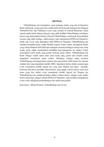 TribunPadang.com merupakan, suatu jaringan media yang ada di Sumatera Barat, Indonesia, yang mana situs media berita ini di bawah naungan dari Jaringan TribunNetwork dan Tribunnews.com yang tersebar di seluruh Indonesia. Sama seperti media berita lainnya banyak yang salah melihat TribunPadang.com hanya portal yang menyediakan berita, ternyata TribunPadang.com banyak menyediakan sesuatu yang tidak terduga, salah satunya yaitu mempunyai EO/Event Organizer. Salah satu event yang dijalankan oleh EO/Event Organizer TribunPadang.com adalah tournament game online Mobile Legend. Game online, merupakan media yang cukup diminati oleh beberapa kalangan terutama kalangan remaja atau anak muda, game online memberikan kelebihan bagi penggemar itu sendiri. Untuk mensupport kaula muda yang gemar bermain game online, TribunPadang.com hadir sebagai wadah untuk anak anak muda yang gemar dan tertarik untuk mengikuti tournament game online. Sekaligus sebagai ajang promosi TribunPadang.com kepada para sponsor dan masyarakat. Oleh karena itu, metode analisis data yang digunakan adalah AIDA, digunakan karena dalam perancangan event tournament mobile legend ini, yang akan ditekan kan harus menarik, berkesan dan harus memiliki nilai promosi yang tinggi, karena sukses acara dari masa yang ikut dalam event tournament mobile legend ini. Dengan ini, TribunPadang.com mempromosikan dirinya bukan hanya sebagai suatu media berita tetapi juga sebagai sebuah EO/Event Organizer yang berhasil mengadakan event-event mengikuti perkembangan dan minat masyarakat.
