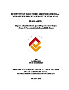 Gio, Rahmad (2025) PERANCANGAN BUKU CERITA BERGAMBAR SEBAGAI MEDIA PENGENALAN TAUHID UNTUK ANAK ANAK. Sarjana thesis, Universitas Putra Indonesia YPTK Padang.