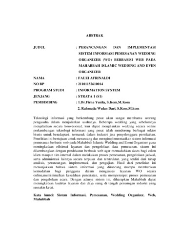 PERANCANGAN DAN IMPLEMENTASI SISTEM INFORMASI PEMESANAN WEDDING ORGANIZER (WO) BERBASIS WEB PADA MAHABBAH ISLAMIC WEDDING AND EVENT ORGANIZER
