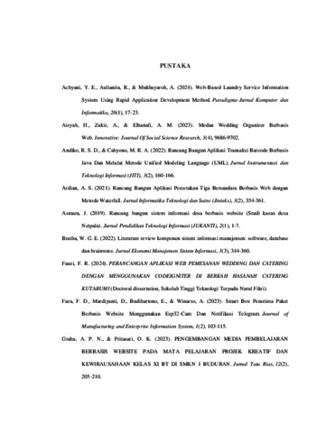 Afrinaldi, Fauzi (2025) PERANCANGAN DAN IMPLEMENTASI SISTEM INFORMASI PEMESANAN WEDDING ORGANIZER (WO) BERBASIS WEB PADA MAHABBAH ISLAMIC WEDDING AND EVENT ORGANIZER. Sarjana thesis, Universitas Putra Indonesia YPTK Padang.
